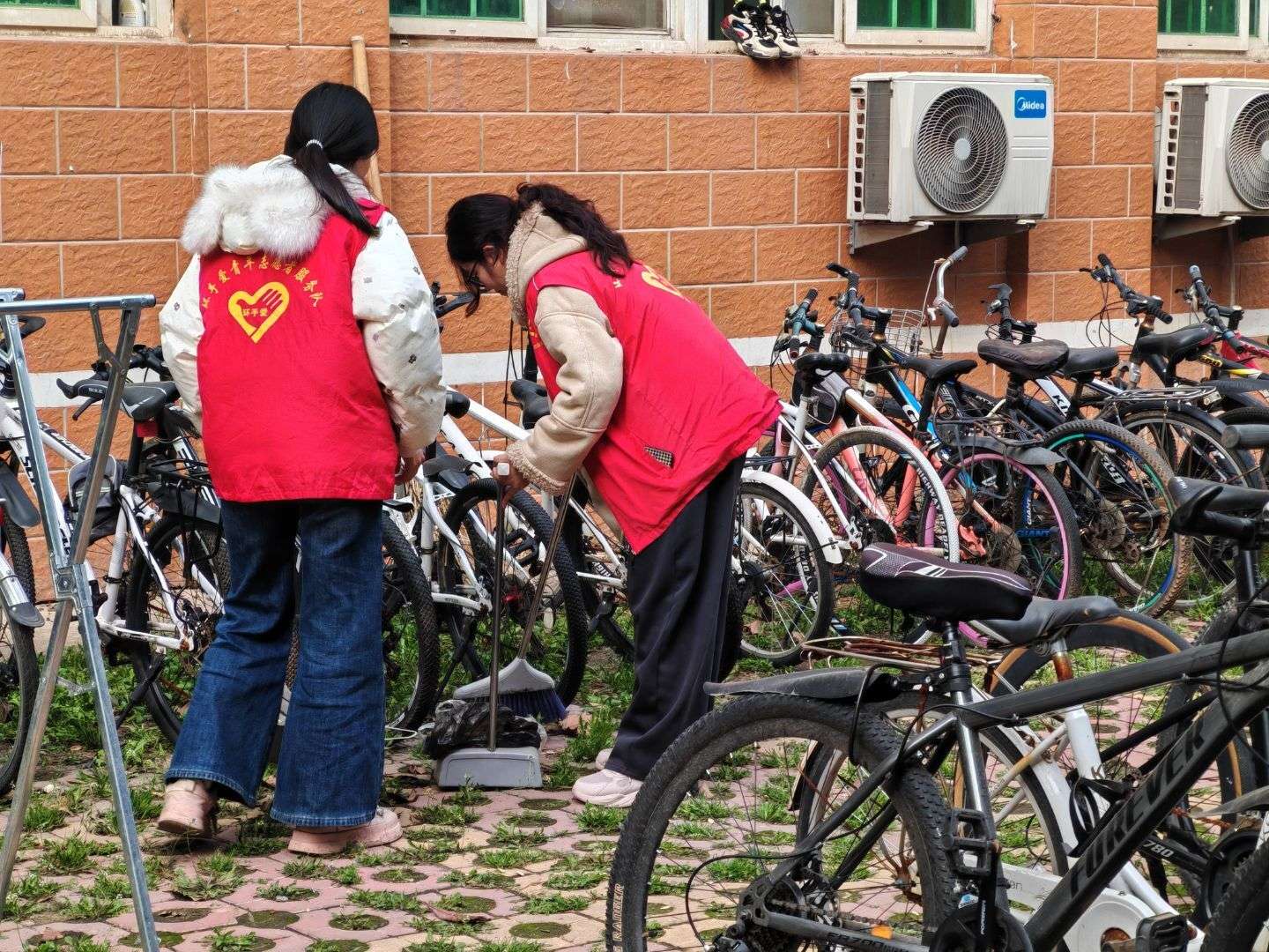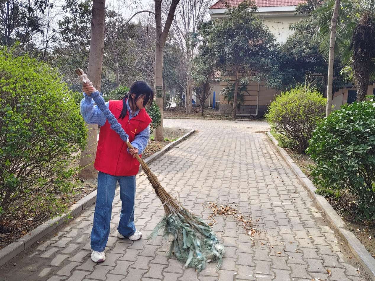 规范停车秩序 守护校园整洁——文法学院环手爱青年志愿者服务队开展规范停车活动 为弘扬“奉献、友爱、互助、进步”的志愿精神,深入践行雷锋精神,扎实推进文明校园创建工作,营造安全有序、整洁优美的校园环境,河南牧业经济学院文法学院环手爱青年志愿者服务队3月12日至3月19日,开展为期一周的校园规范停车志愿服务活动。 活动启动后,12名志愿者在指定地点集结完毕,明确分工、协同配合,携带扫帚、簸箕等工具前往学生宿舍区。志愿者聚焦宿舍区车辆停放混乱、周边环境卫生薄弱等问题,开展集中整治与清洁工作。大家对宿舍楼前公共区域进行全面清扫,细致清理地面纸屑、落叶及各类杂物;针对自行车乱停乱放、歪斜倒地等现象,逐一扶正车辆、规范排列,将零散车辆有序归位至指定停车区域。经过志愿者们的共同努力,8号楼、17号宿舍楼前停车区域车辆摆放整齐划一,地面环境干净清爽,切实保障了同学们通行安全与道路畅通,校园面貌焕然一新。