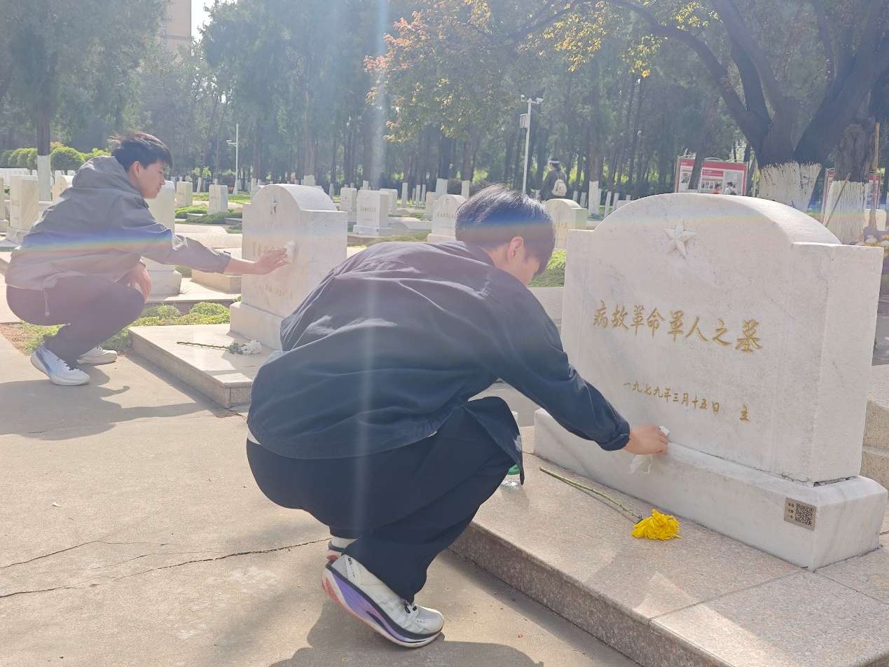 棠梨风拂清明至,赤子丹心敬英魂 为缅怀革命先烈,赓续红色血脉,厚植爱国情怀,华北水利水电大学小马达志愿服务团联合书记助理团于4月5日前往郑州烈士陵园开展“清明祭英烈,青春践初心”主题志愿服务活动,以肃穆的仪式追思革命先烈,以赤诚的情怀致敬英雄忠魂,向为民族独立、人民解放奉献生命的英烈们致以最崇高的敬意与最真挚的缅怀。 在革命烈士纪念碑前,同学们列队肃立、神情肃穆,怀着对革命先烈的无限崇敬与追思鞠躬默哀,向英烈致以深切悼念。大家手持洁白菊花,依次缓步走到纪念碑前敬献,朵朵菊花寄哀思,寸寸丹心敬忠魂,以此缅怀英烈们为家国事业抛头颅、洒热血的无畏壮举,感念他们用生命铸就的不朽功勋。 怀着对革命先辈的敬仰,同学们前往郑州国防园参观学习。园内陈列的坦克、飞机、等国防装备静静镌刻着峥嵘岁月的烽火记忆,诉说着革命先辈保家卫国的峥嵘历程。大家驻足凝视、认真端详,从一件件承载革命荣光的实物中,深刻感悟革命先辈以身许国的铁血担当与赤诚初心,爱国之情在心底深深扎根。 循着红色足迹,感悟初心使命。在中原英烈纪念馆,同学们认真聆听革命先辈们的英雄事迹,从他们前赴后继、英勇奋斗的感人故事中,感悟矢志不渝的赤胆忠心和为国为民的崇高情怀,于字里行间、史迹光影中接受了一次直击心灵的红色精神洗礼,让红色基因融入青春血脉,让初心使命在心中扎根铸魂。 棠梨风拂清明至,赤子丹心敬英魂。此次活动是一堂直抵心灵的红色教育课,同学们于缅怀英烈中淬炼精神底色,在追思忠魂中提升思想境界,让红色初心更加坚定纯粹。未来,小马达志愿服务团将以此次活动为契机,把对革命先烈的追思与敬意化作勇担使命、砥砺前行的不竭动力,以实际行动践行青春誓言,让红色基因薪火相传、生生不息,以青春之我、奋斗之我,为全面建设社会主义现代化国家、全面推进中华民族伟大复兴贡献力量!