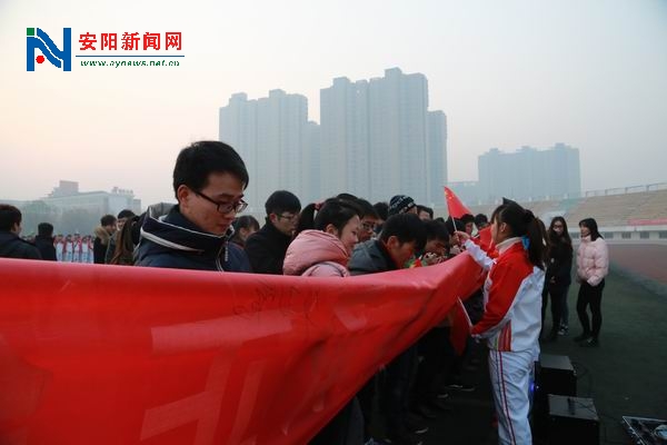 微寒的清晨,1号体育场内彩旗飘扬,安阳工学院校团委在学校1号体育场隆重举行“铭记一二·九,传承正能量——学生爱国运动”升旗仪式,纪念一二·九运动79周年。 7点20分,来自12个学院的645名学生在1号体育场集合完毕,在体育场上摆出“一二·九”的字样。7点30分,升旗仪式正式开始。20名国旗护卫队队员护卫着国旗庄严地走进体育场,在嘹亮的国歌声中将国旗缓缓升起。升旗完毕,学生代表刘飞进行朗诵,表达安工师生的拳拳爱国之情。仪式最后,参加活动的领导、老师、学生代表纷纷在横幅上签名。 国旗护卫队队员武俊良说:“‘一二·九’运动是党领导下的一次伟大的学生爱国运动,值得铭记与缅怀。我们国旗护卫队也将以‘一二·九’运动的学生为榜样,‘树爱国之心,立报国之志’。”