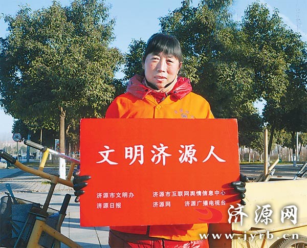 吴翠平成为“文明济源人” 她有时挥舞扫帚打扫卫生,有时手拿夹子捡拾垃圾,每天上午8点到12点,下午4点到8点出现在玉川街上。她是吴翠平,一名普通的环卫工人,众多城市“美容师”中的一员。 吴翠平负责玉川街的卫生保洁工作已有3年了。“路面上有泥的时候,雨下得越大越好。”吴翠平说,雨大的时候,路面上的泥更容易被清扫干净。所以,她只要碰到下雨天,就会到负责路段打扫卫生。吴翠平不仅尽职尽责,还有着热心肠。下雪天,路面很滑,碰到市民骑电动车不小心摔倒了,吴翠平就赶忙跑过去帮忙扶起来;碰到老人迷路了,吴翠平就帮着联系老人的家人,将老人送回家。 工作时间久了,保持路面的干净卫生已经牢记在吴翠平的心里。有时候,吴翠平在工作之余去逛街,发现路面上有白色垃圾,就会弯腰捡起来丢到垃圾桶里。“我已经养成习惯了,看见有垃圾就会捡起来。”吴翠平笑着说,“保护环境,人人有责嘛!”